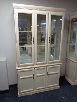 A contemporary glazed mirrored back display cabinet