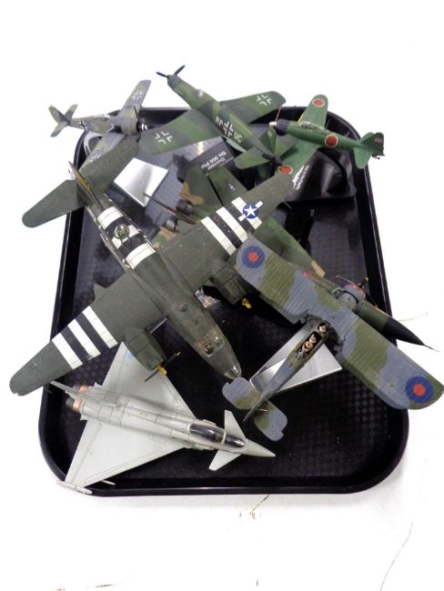 A tray containing seven die cast model aircraft by Corgi Aviation Archive etc.