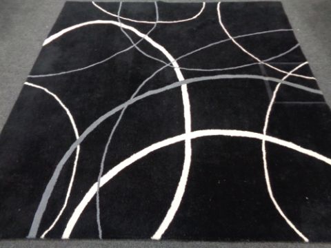 A contemporary machined carpet on black ground, 232 x 227 cm