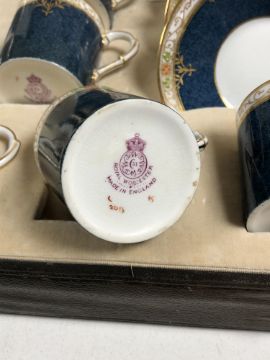A cased twelve piece Royal Worcester cobalt blue and gilt porcelain coffee service