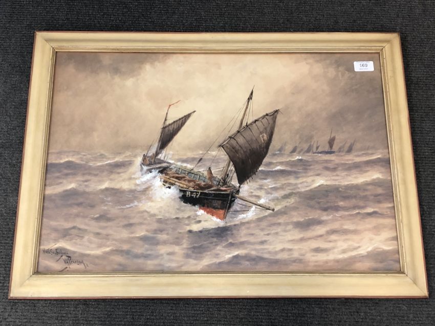 W. H. Pearson : North Sea Fishers, watercolour with body colour, 43 x 64 cm, framed.