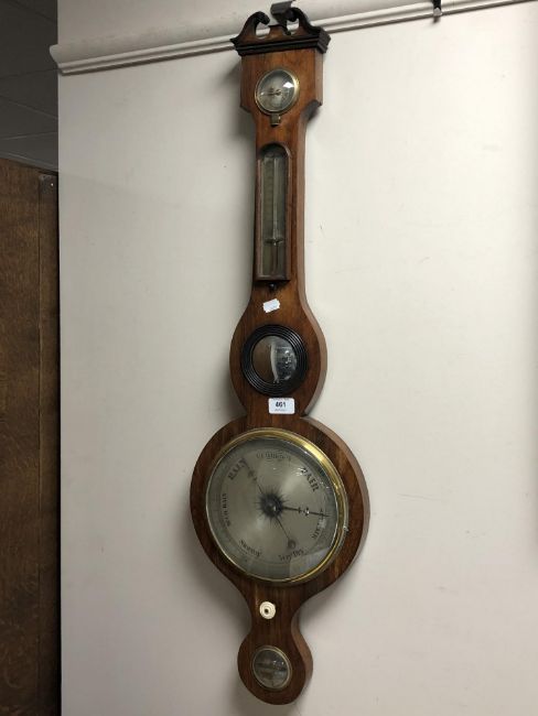 An early 19th century mahogany cased banjo barometer with silvered dial