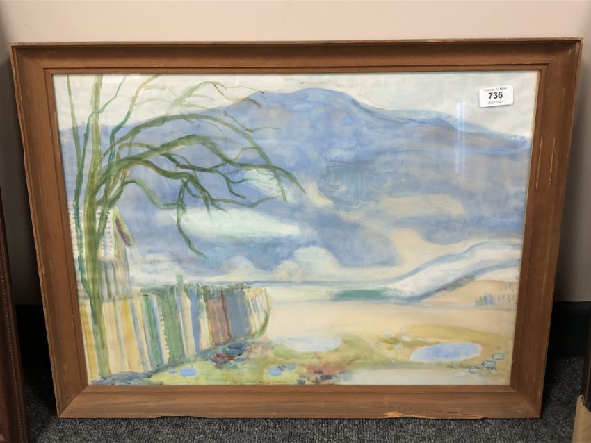 Continental school : A landscape with mountains beyond, watercolour, 56 x 40 cm, framed.