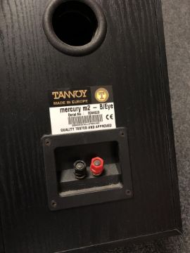 A pair of Tannoy speakers together with a further pair of MS speakers and a box containing a large quantity of assorted speaker cable