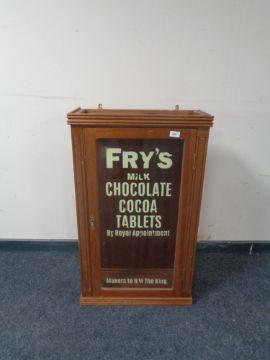 A wall mounted display cabinet bearing later Fry's Chocolate advertisement