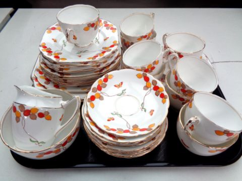 A thirty-eight piece antique Diamond china hand painted tea service