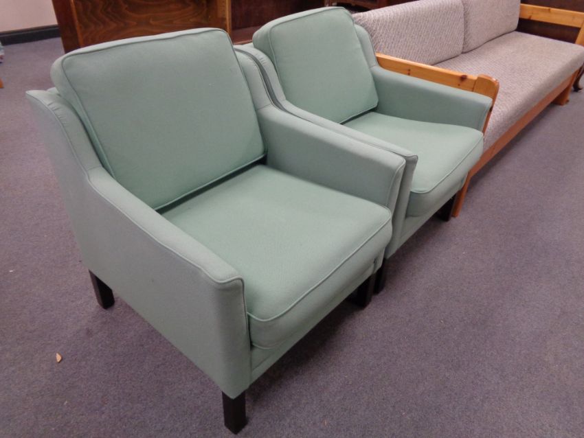 A pair of 20th century armchairs upholstered in a green fabric