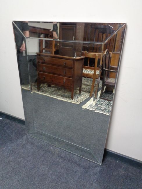 A contemporary all glass mirror framed bevel edged mirror