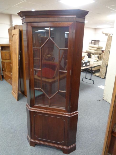 A mahogany astragal glazed corner cabinet fitted cupboard below
