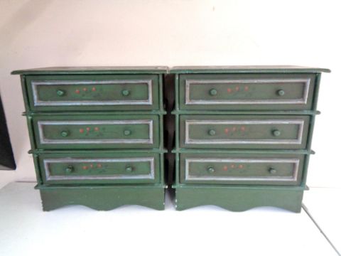 Two contemporary painted three drawer chests together with a painted wooden caddy
