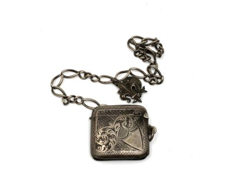 A silver vesta case on chain