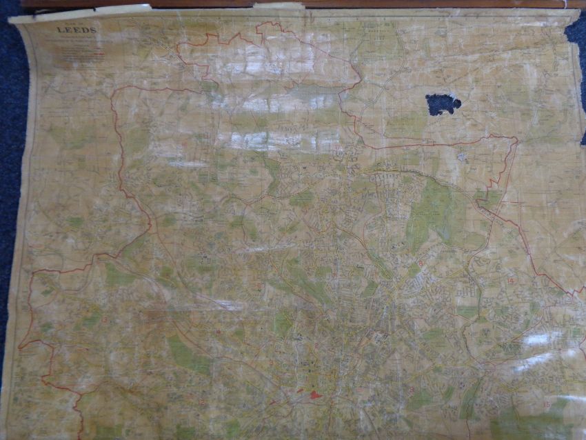 A 20th century pull down plan of Leeds produced and published by Geographia Ltd, Fleet Street, London