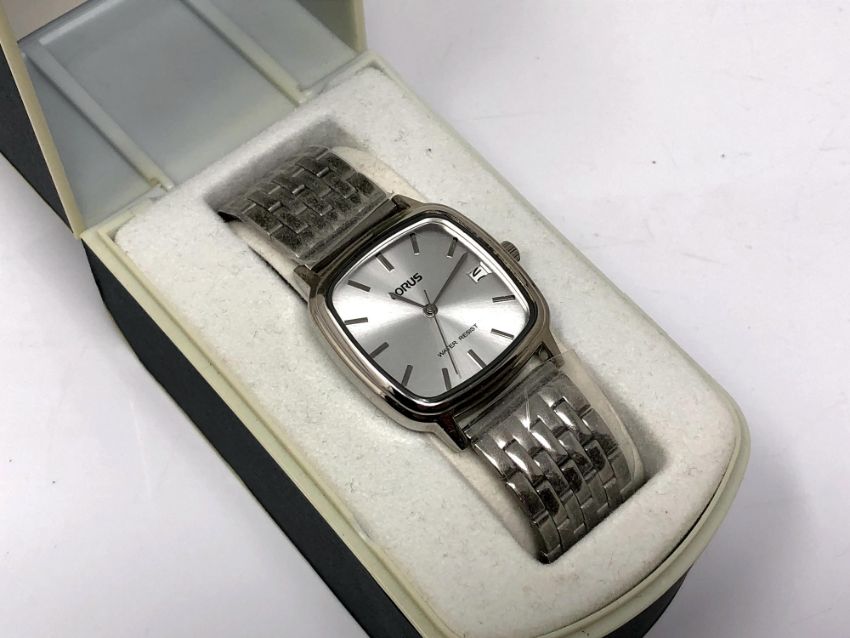 A gent's Lorus stainless steel quartz calendar wristwatch, boxed.