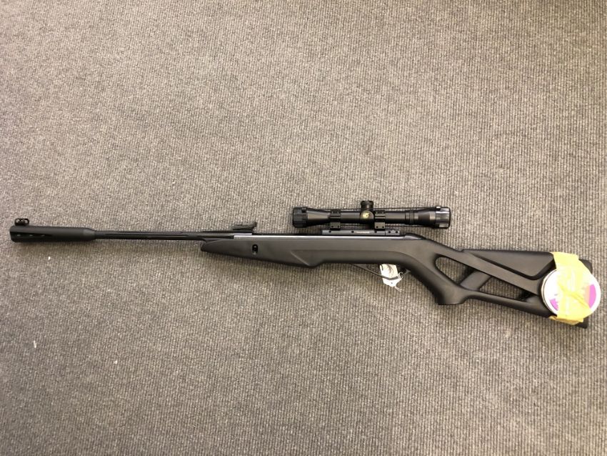 A Gamo Whisper IGT .22 calibre air rifle, serial no. 04-1C-010362-20 16J, with intergated silencer, with telescopic sight, with tin of pellets.