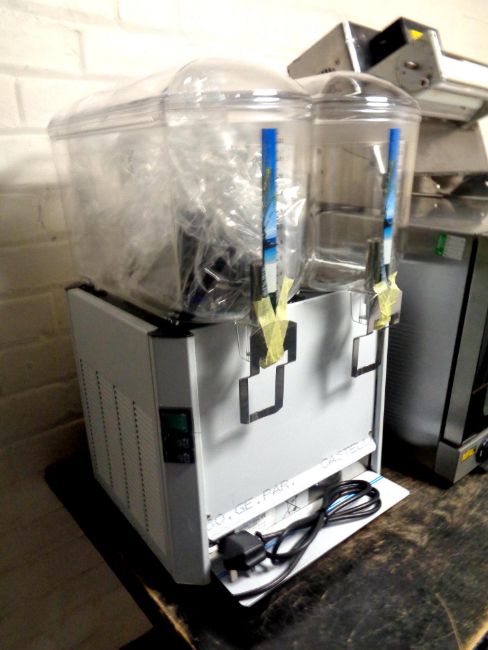 A twin electric counter top drinks dispenser