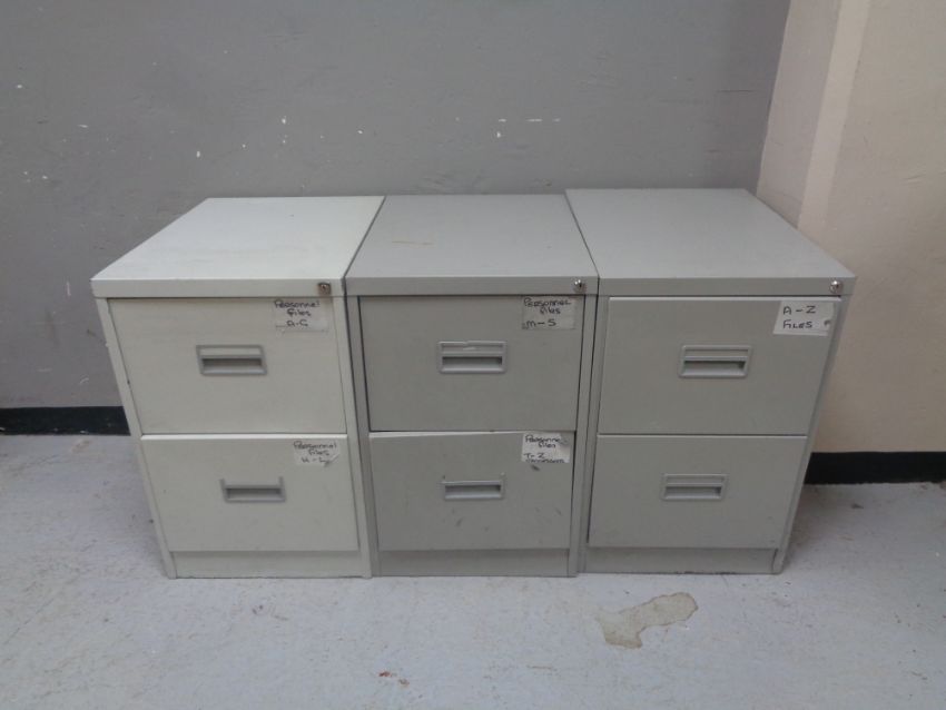 Three two drawer metal filing cabinets