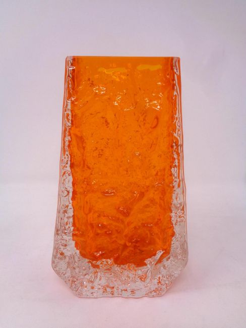 A Whitefriars bark textured coffin vase, tangerine, height 13 cm
