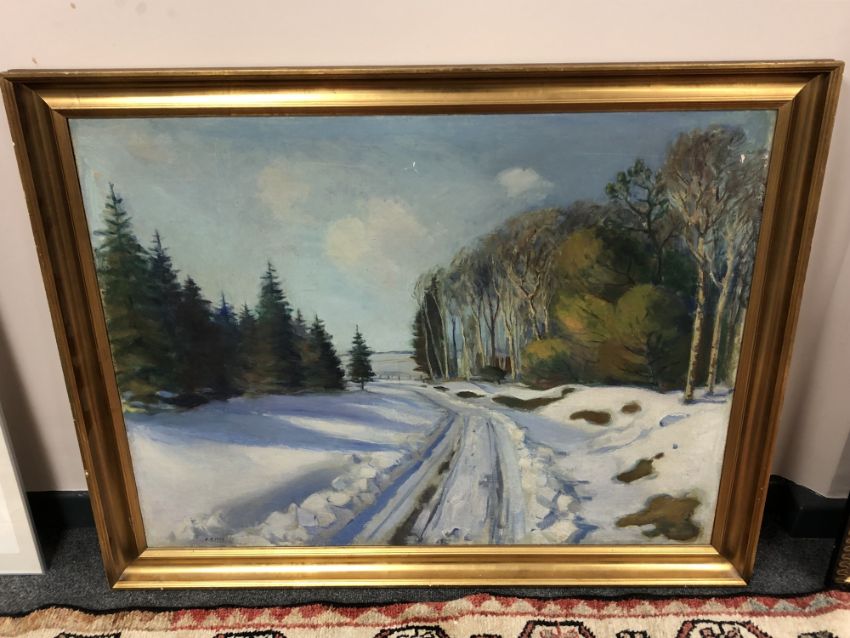 Continental school : A snowy landscape, oil on canvas, 100 x 76 cm