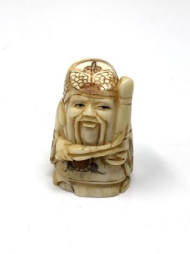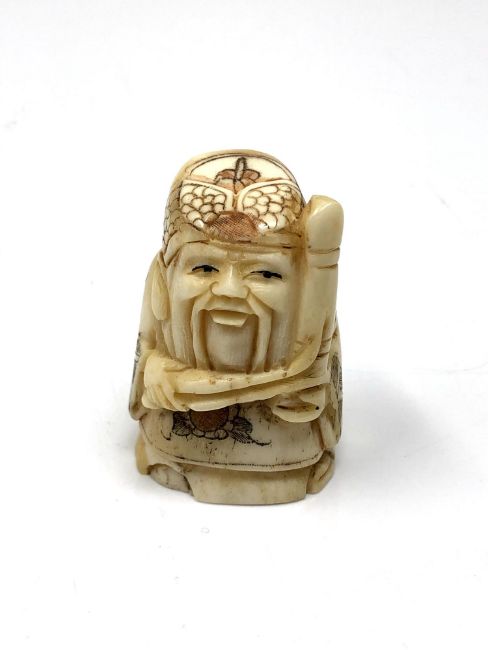 A carved Chinese bone netsuke - Gentleman holding a club