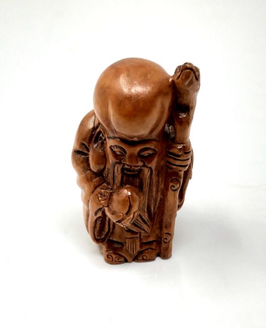 A carved Chinese hardwood netsuke - Elderly Gentleman with staff