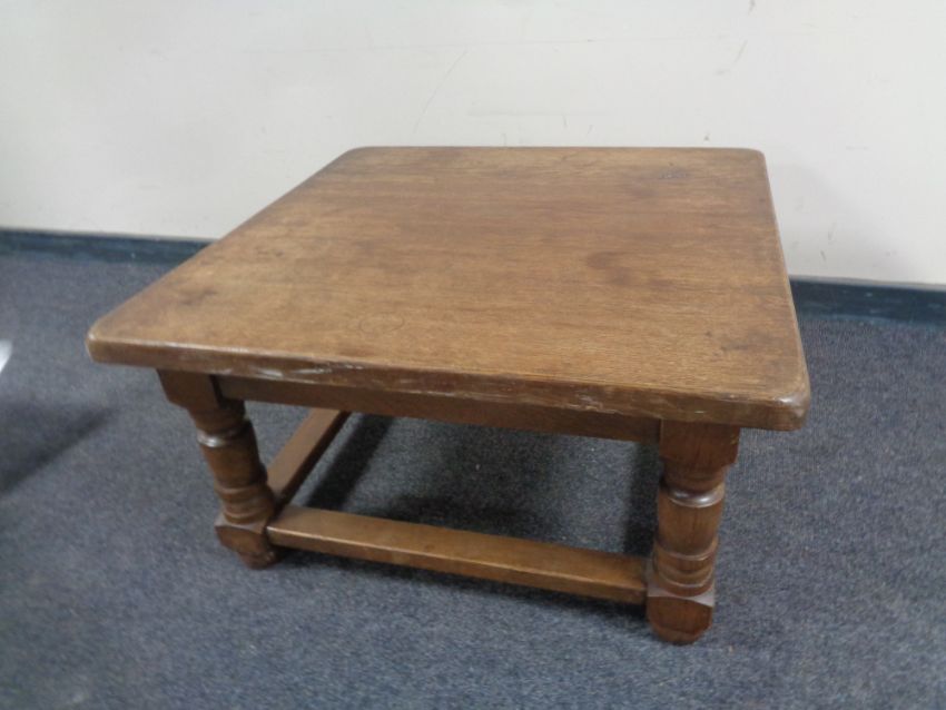 A square oak coffee table