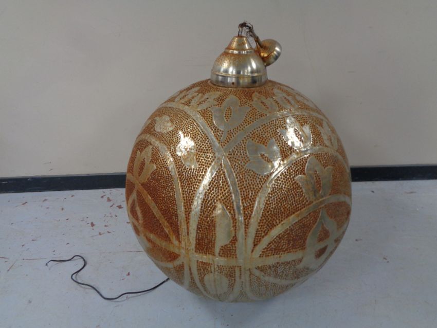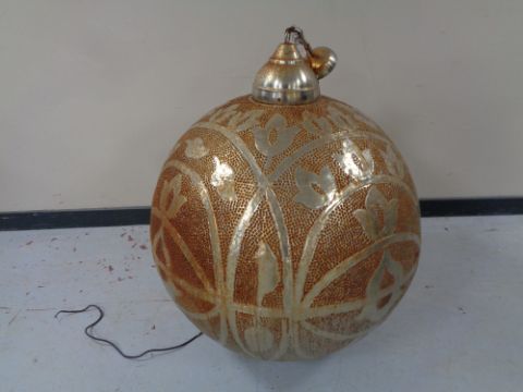 A spherical white metal embossed light fitting