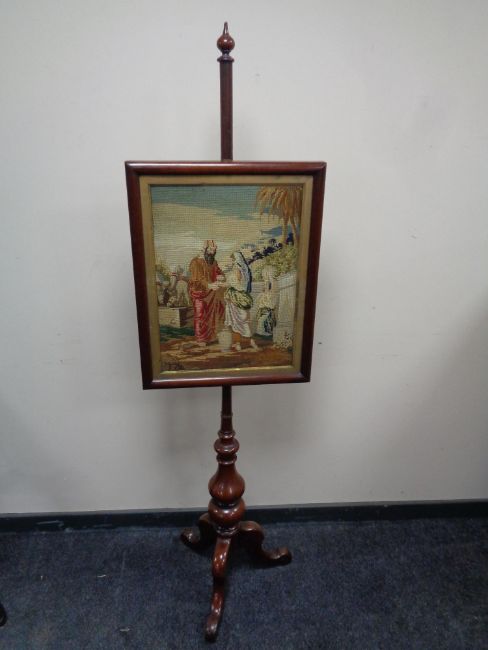 A Victorian mahogany tapestry pole screen
