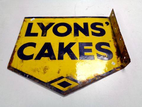 A 20th century double sided enamelled Lyons' cakes sign.
