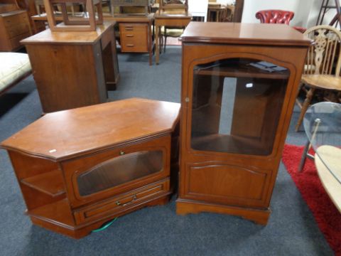 A contemporary audio cabinet and TV stand in a walnut finish.