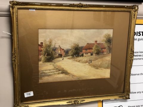 H. English : figures in a country lane, watercolour, 35 cm x 23 cm