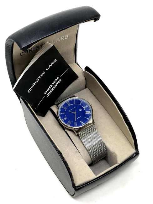 A gent's Christin Lars stainless steel quartz calendar wristwatch, boxed.