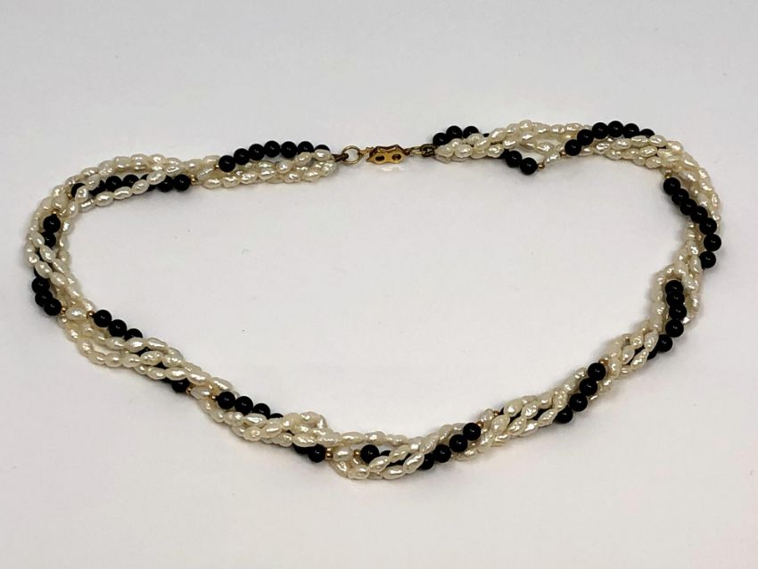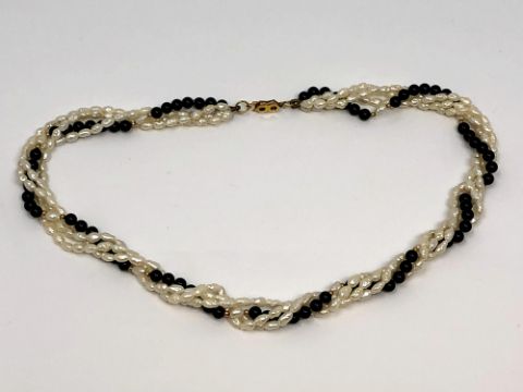 A pearl and agate necklace with 9ct gold clasp and beads