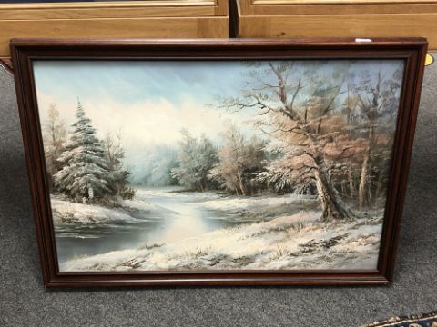 Contemporary school, a frozen river landscape, oil on canvas, signed Williams, 90cm by 59cm