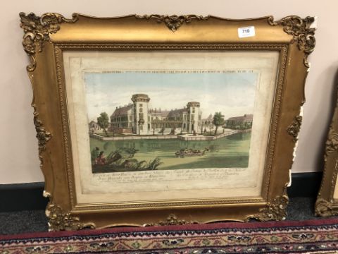 An early 19th century hand coloured engraving depicting a continental palace, 50 cm x 40 cm