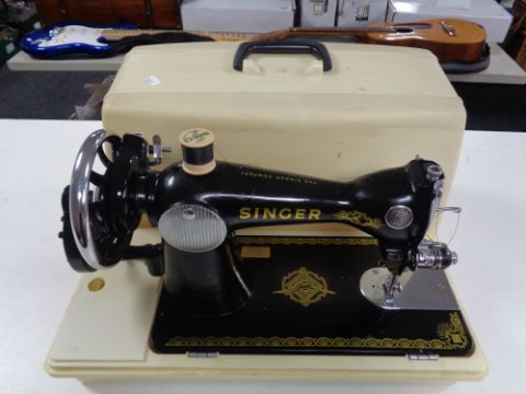 A cased Singer hand sewing machine