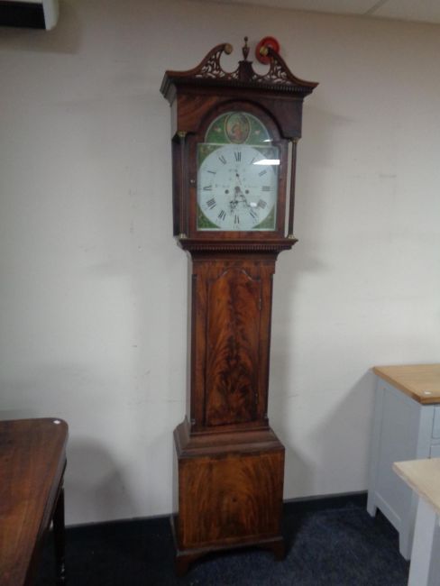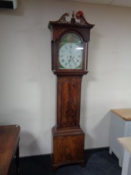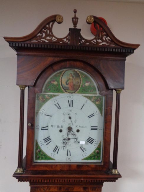 A 19th century inlaid mahogany longcase clock with painted signed William Hall, North Shields