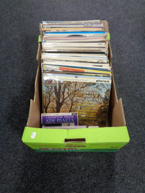 A box of vinyl LP records - world music, compilations etc