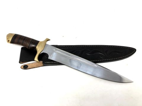 A Down Under Knives 'Toothpick' knife in leather sheath.