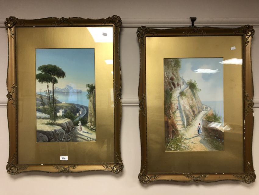M Gianni (Italian, 19th/20th century) Mediterranean landscape, watercolour, 30 x 48 cm, signed, together with the companion piece, both parts framed (2)