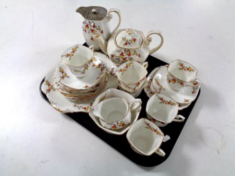 A tray of twenty four piece Royal China Tudor shape hand painted tea china
