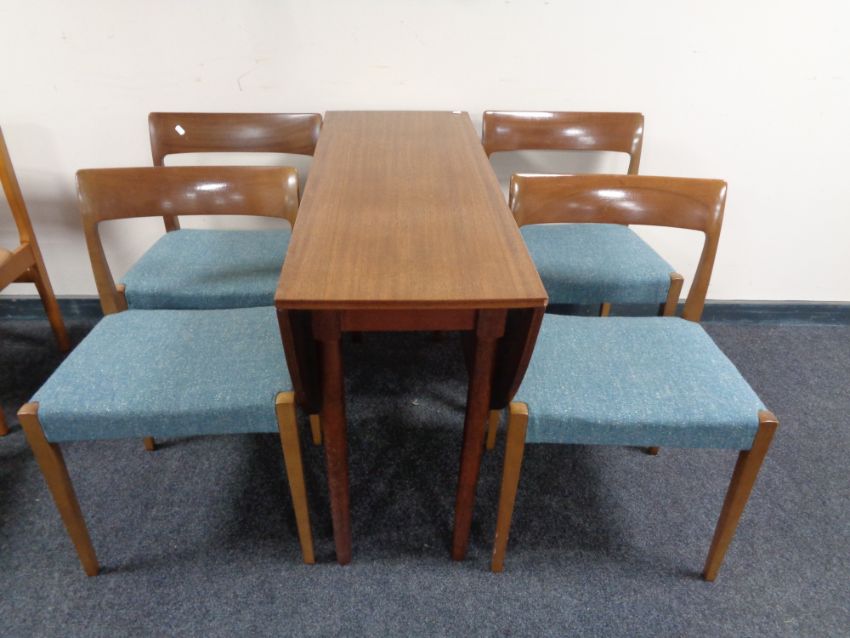 A mid 20th century teak G Plan drop leaf table and four chairs