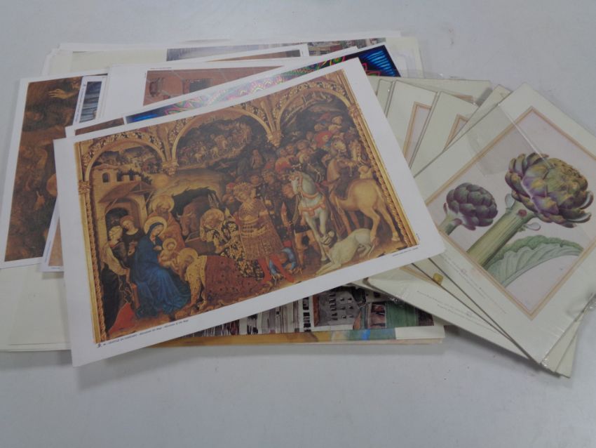 A large quantity of unframed prints to include religious scenes, Michelangelo's Madonna etc
