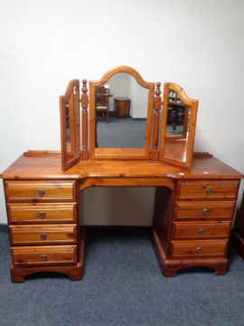 A Ducal pine eight drawer dressing chest with triple mirror