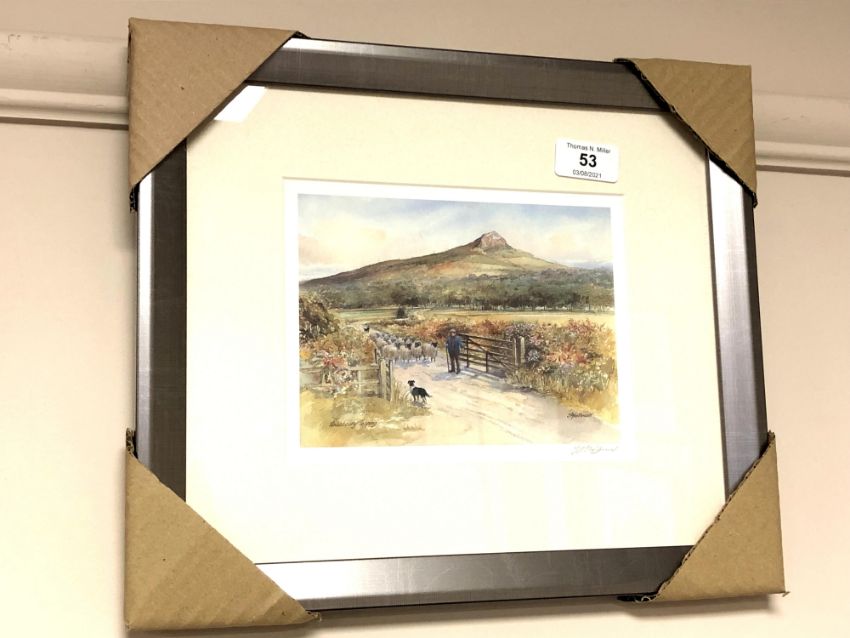 After Tom MacDonald : Roseberry Topping, reproduction in colours, signed in pencil, 13 cm by 18 cm, framed.