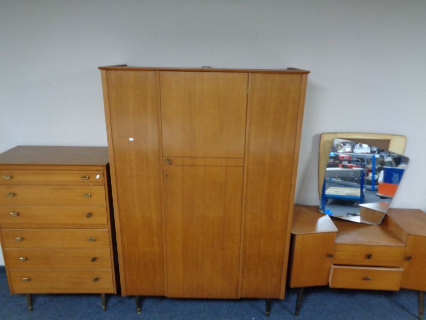 A twentieth century Lebus furniture three piece teak bedroom suite