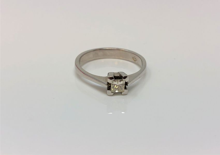 An 18ct white gold princess cut solitaire diamond ring, size M