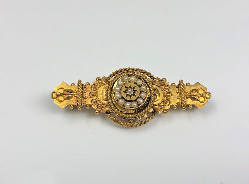 A 15ct gold pearl and diamond brooch
