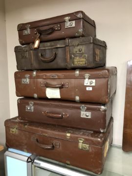 Five vintage leather suitcases
