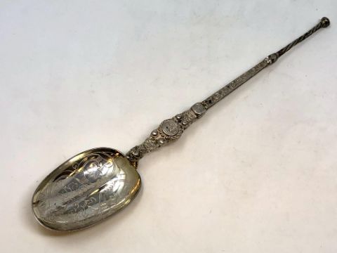 A large silver gilt copy of an anointing spoon by Elkington, Birmingham 1910