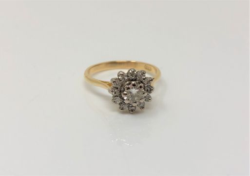 An 18ct gold diamond cluster ring, the central stone approx. 0.30 carat, size M